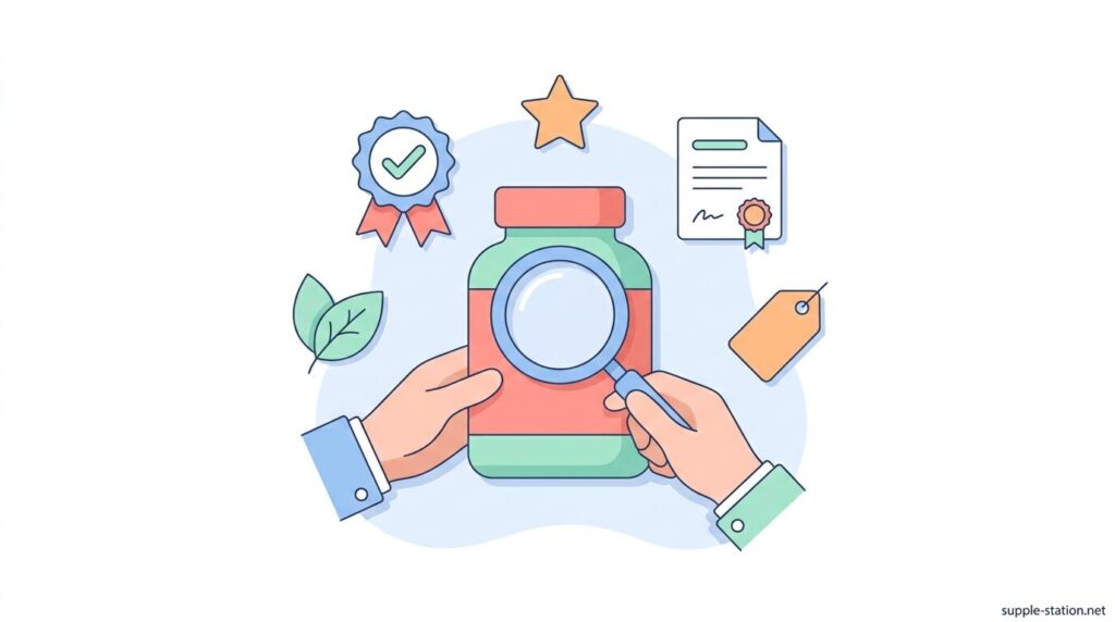「USP Verified」や「NSF」などの第三者認証マークがあるかを確認します。これらは外部機関が成分量・純度・不純物の有無を検査しており、ラベルに記載された成分量が実際に含まれていることを確認した証明になります。