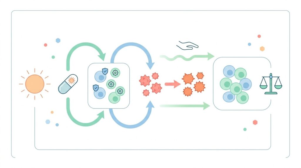 ここでは、具体的にどのように免疫の過剰反応に関係しているのか、そしてビタミンD不足とアレルギーの関係について順番に見ていきます。