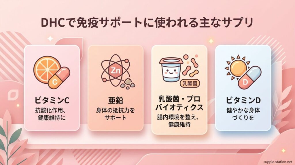 DHCで免疫サポートに使われる主なサプリ