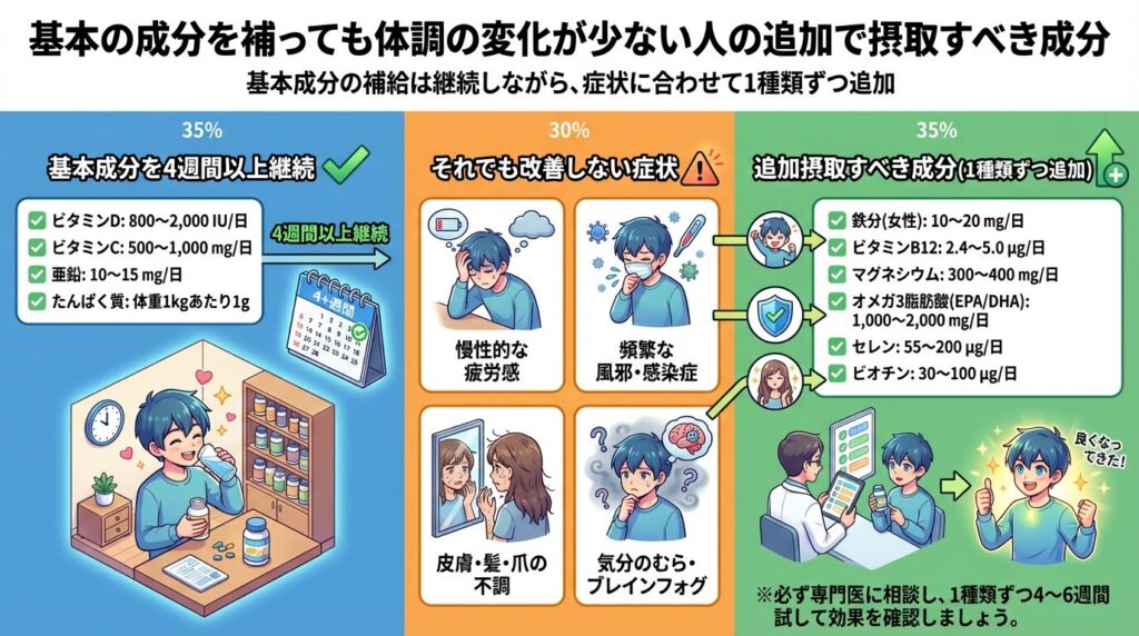 基本の成分を補っても体調の変化が少ない人の追加で摂取すべき成分
