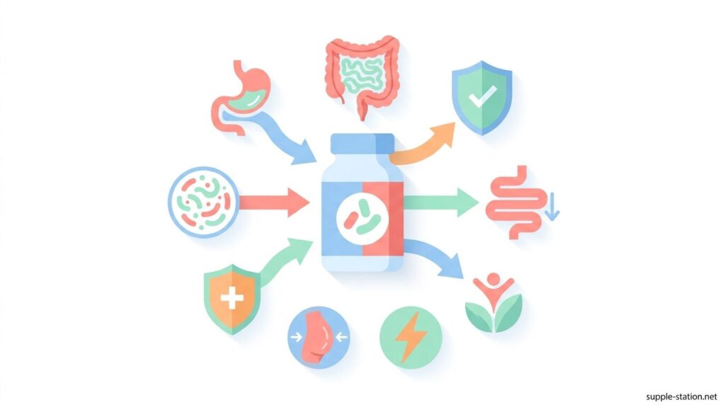実際にどのように腸内フローラへ働きかけるのか、そして便秘や下痢にどう作用するのかを順番に見ていきます。