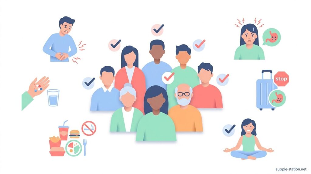 3日以上排便がなく、便が硬くていきむ時間が5分以上かかる状態が続いている人や、食後30分〜1時間以内にお腹が張ってガスが溜まる感覚が週に3回以上ある人に向いています。